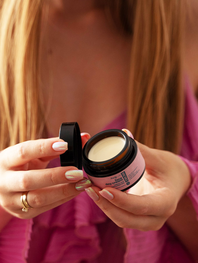 Nourishing day cream with a high content of full spectrum CBD extract, vitamin C, hyaluronic acid and rosehip seed oil.